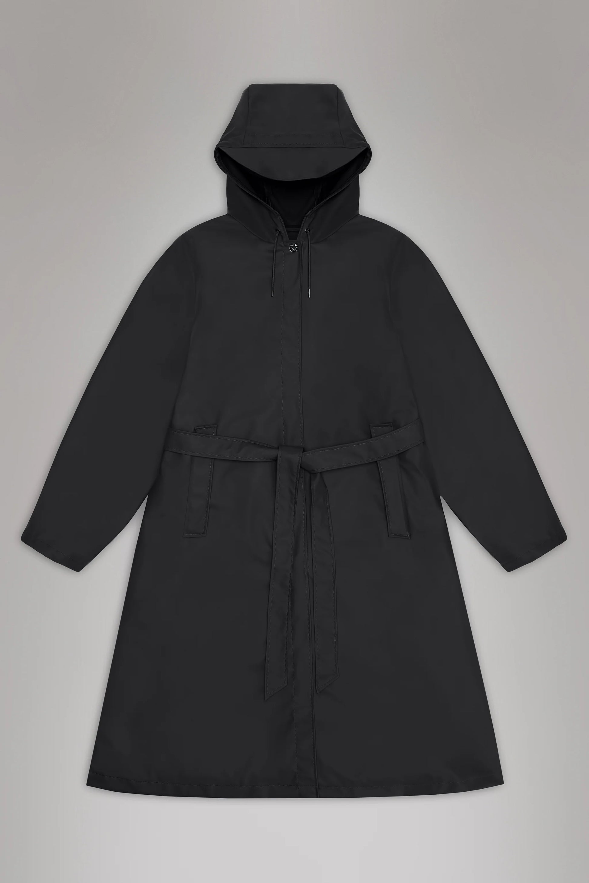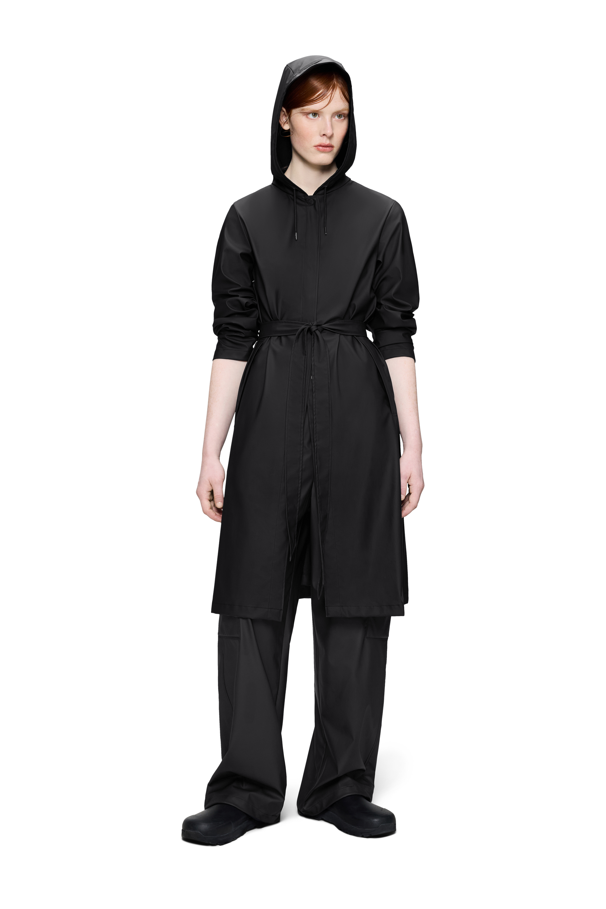 A-Line Longer W Jacket is a women’s raincoat characterized by its A-shaped silhouette and belt that elegantly accentuates the waist.