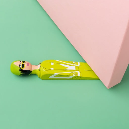 Each Wedgie doorstop is hand stamped with a Wedgie logo and comes with a character description sticker attached to the back.