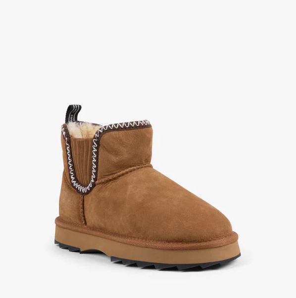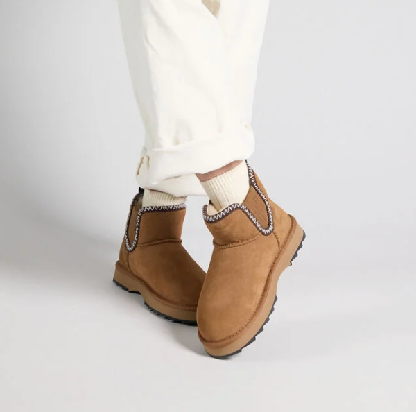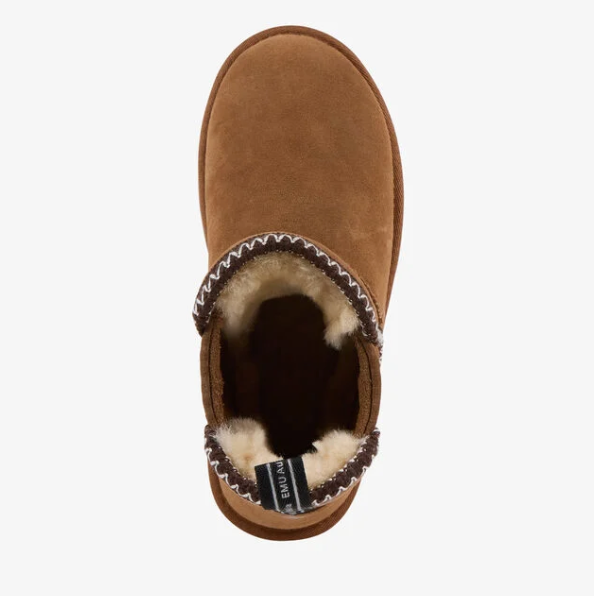 Don’t be fooled by the size—this little boot has big energy. With statement Aztec-inspired embroidery, water-resistant Australian sheepskin and our chunky Sharky sole, it’s built for comfort, edge, and that effortless pull-it-on-and-go lifestyle. The micro cut keeps things modern, the pull tab makes life easy, and the whole vibe? Pure EMU attitude. Cozy never looked this confident.
