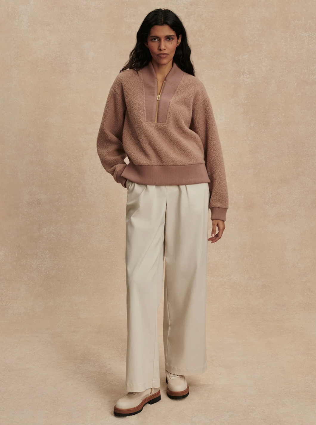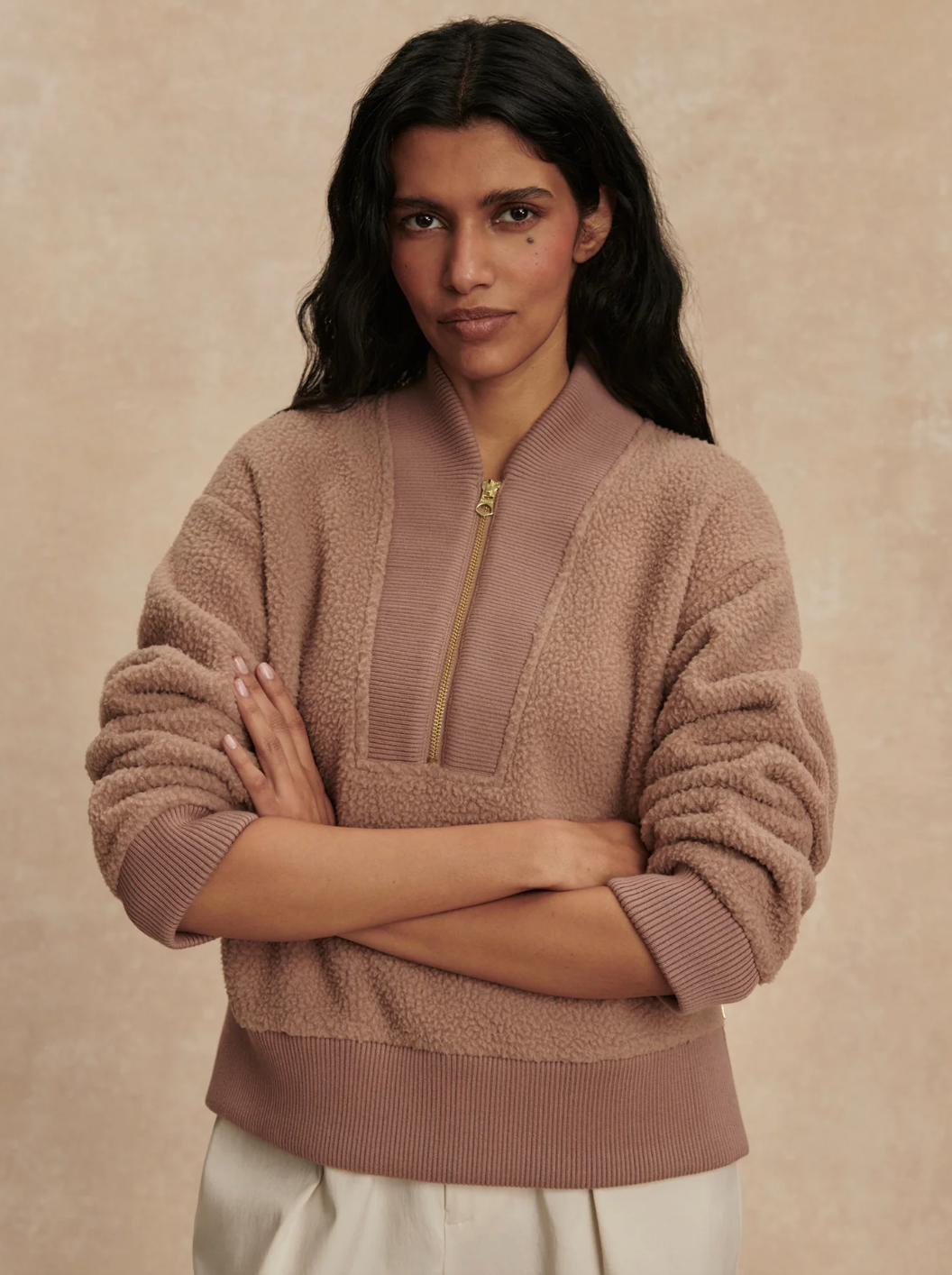 Inspire your seasonal wardrobe with this elevated take on a half-zip fleece. Made from our soft and insulating Plush Borg Fleece, the Mumford is accentuated with a ribbed hem, cuffs, and a panel along the front zip. Cut to a relaxed fit with loose sleeves and a contemporary neckline, it delivers all-day comfort with style.