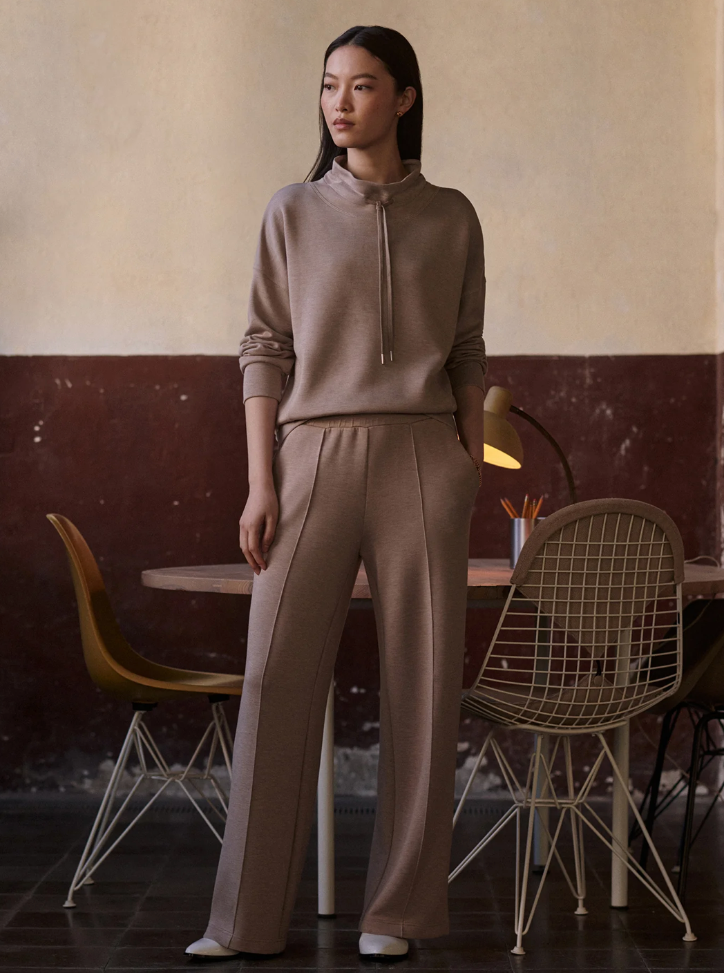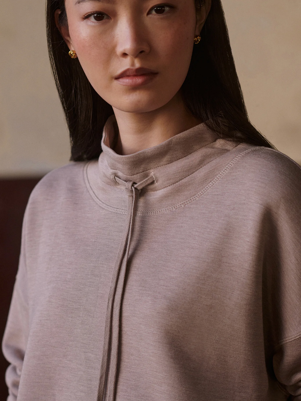 The Oakdale sweat is a casual, on-the-go style with a built-up mock neck and tie channel. Throw on with the coordinating Slim Cuff pant for a DoubleSoft® look that’ll keep up with your day.
